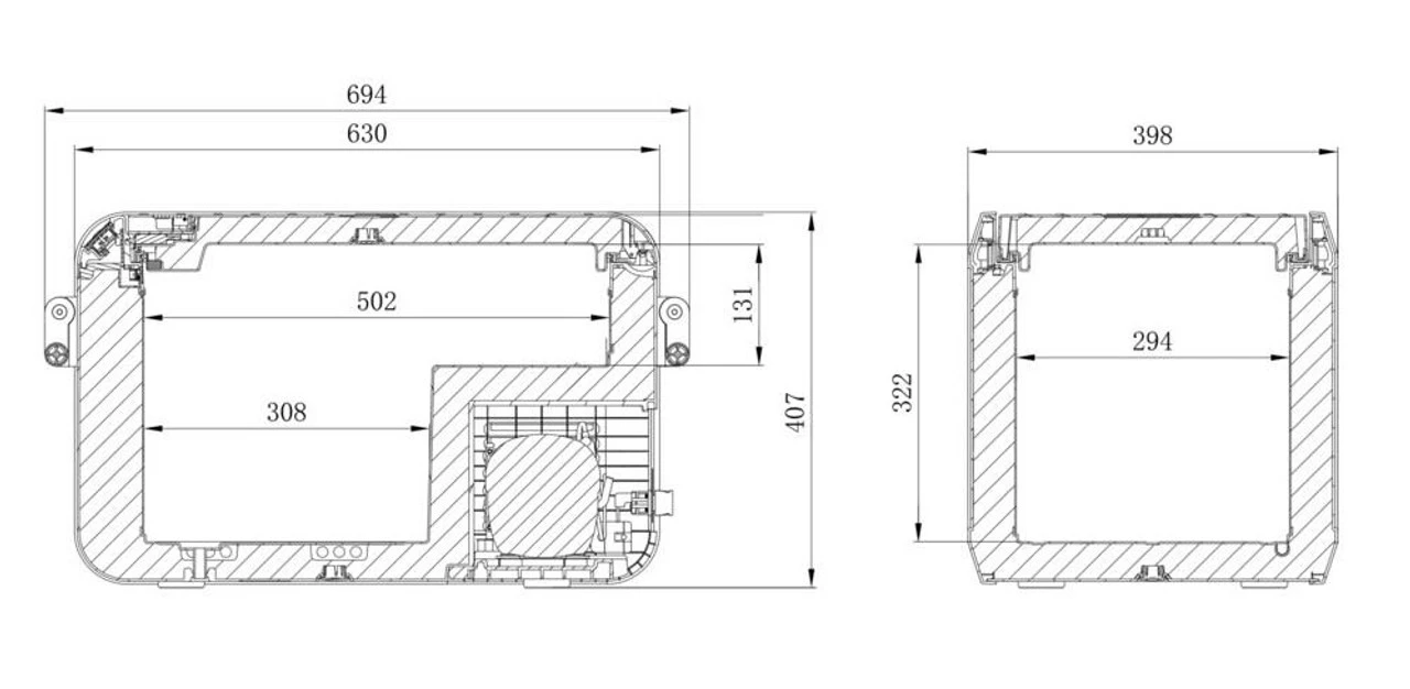 - Dimensions: depth 694 mm, height 407 mm, width 398 mm